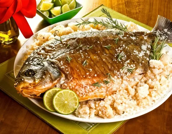 El pacú a la sal es la forma más pura de disfrutar este pescado. La costra de sal marina forma un envase que conserva su humedad y potencia su sabor.